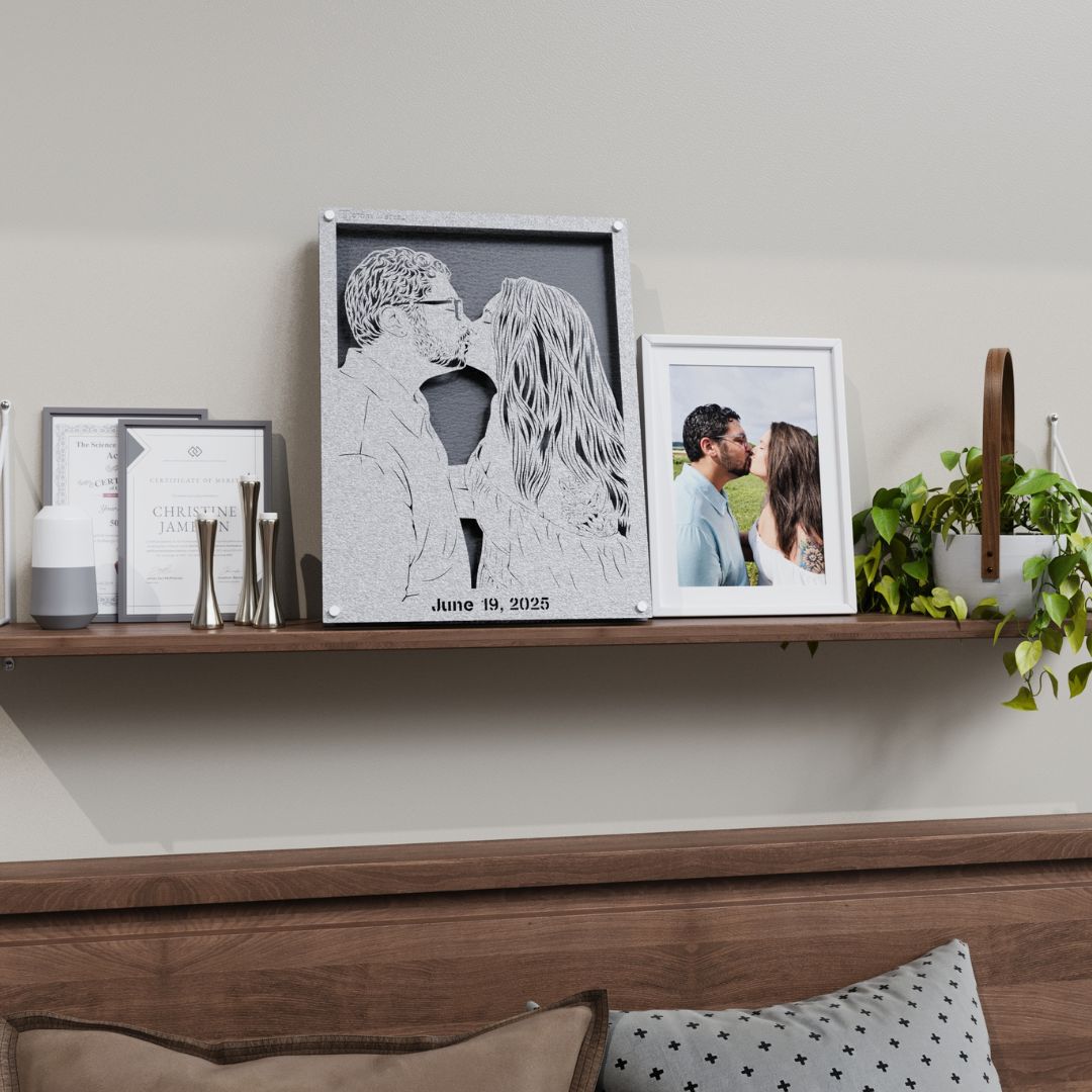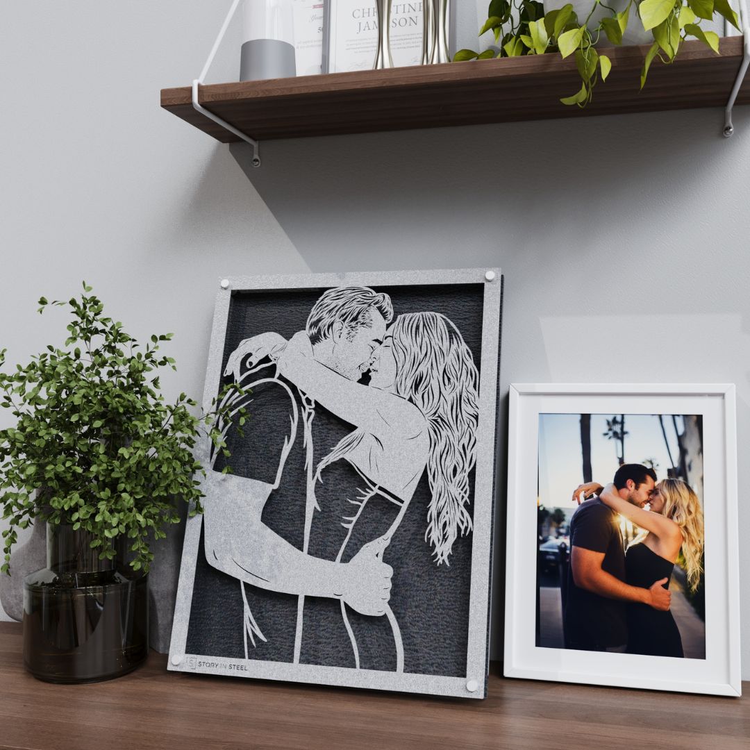 Preserve your cherished moments with custom-crafted steel portraits. Simply upload a photo, select your desired size, and choose a wooden backer color to create a unique, durable art piece. Ideal for special occasions like weddings, anniversaries, or as touching gifts for loved ones, these steel portraits are more than just art—they're a timeless keepsake of your precious memories. Each 'Story in Steel' is a testament to enduring emotions, crafted to last a lifetime. Begin your journey with us today and celebrate life's special moments in a way that will endure through the years.