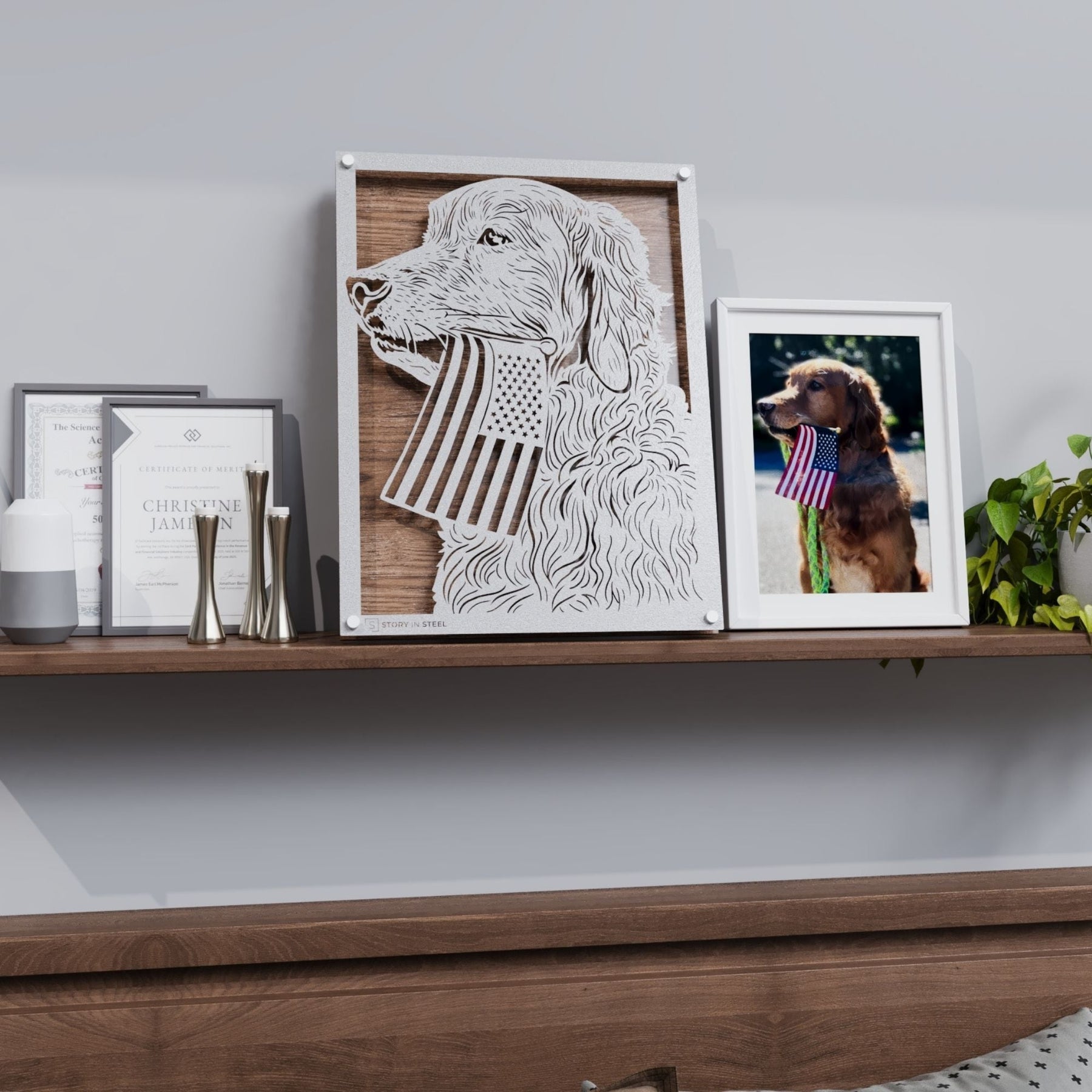 Transform your pet's photo into a timeless piece of art with our personalized steel pet portraits. Perfect for pet lovers seeking a unique gift, our durable, custom pet art captures the essence of your furry friend in exquisite detail. Choose from a variety of sizes, backer colors, and frame options, including hearts and paws or a sleek clear design, to complement any modern decor. Our pet portraits not only serve as a vibrant conversation starter but also as a cherished piece of wall art. Ideal for birthdays, holidays, or as a special tribute, these artful masterpieces are a heartfelt way to show your love. Elevate your home with a "Story in Steel" and celebrate your pet's unique charm today.