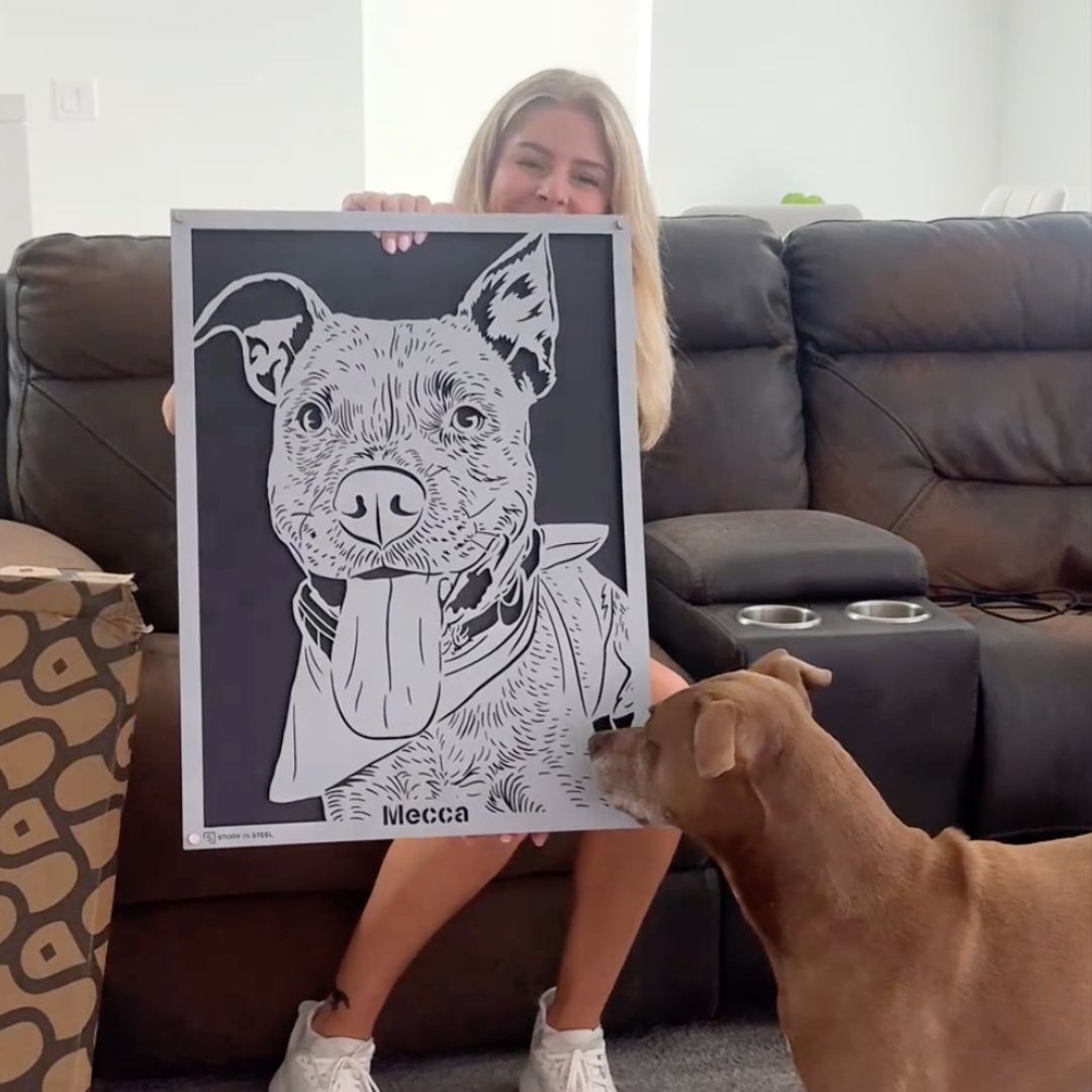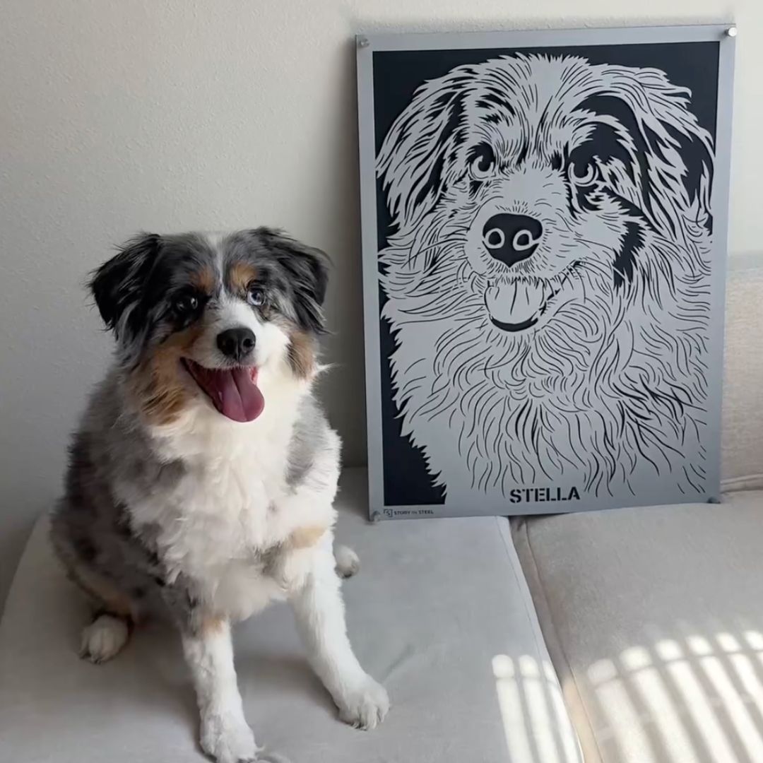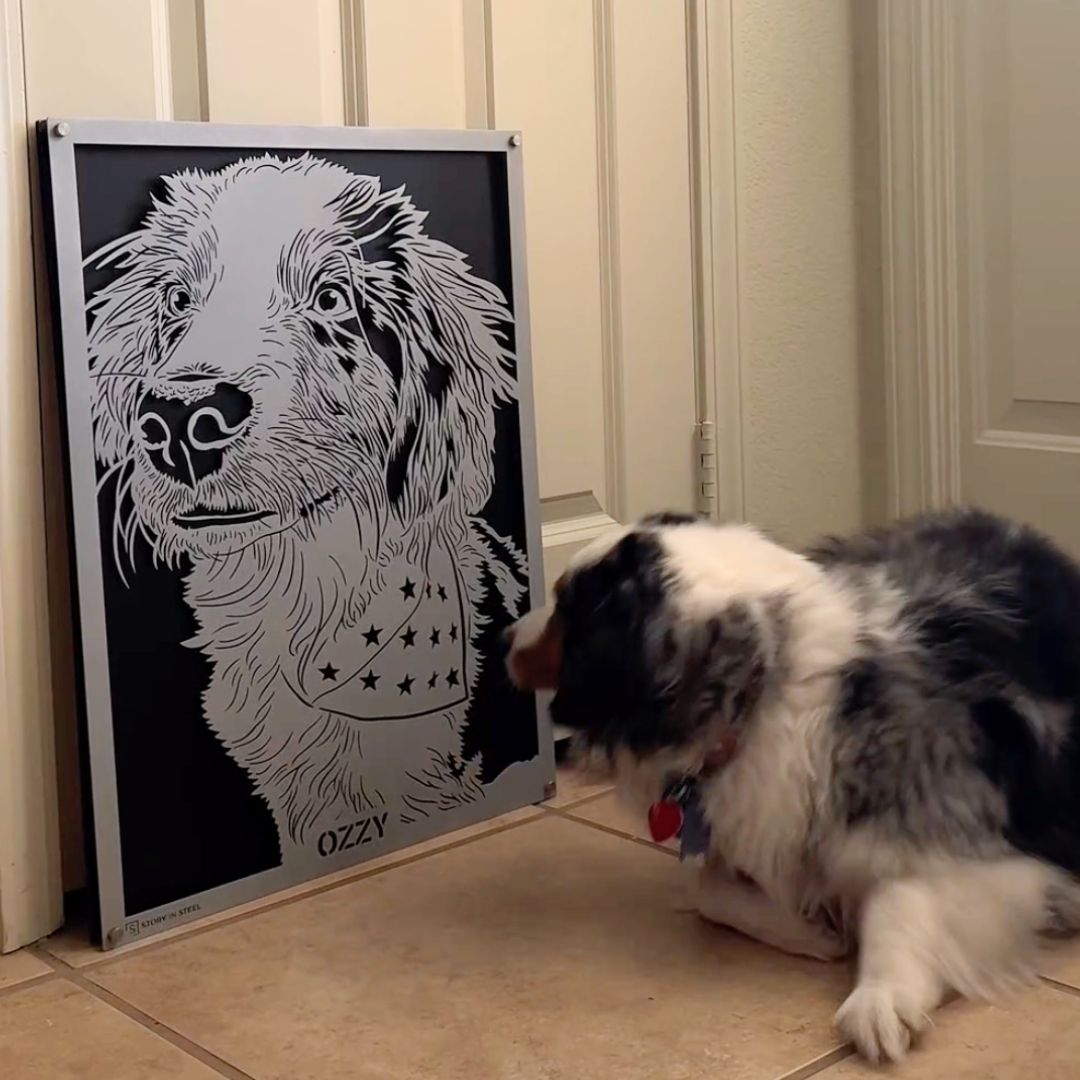 Transform your pet's photo into a timeless piece of art with our personalized steel pet portraits. Perfect for pet lovers seeking a unique gift, our durable, custom pet art captures the essence of your furry friend in exquisite detail. Choose from a variety of sizes, backer colors, and frame options, including hearts and paws or a sleek clear design, to complement any modern decor. Our pet portraits not only serve as a vibrant conversation starter but also as a cherished piece of wall art. Ideal for birthdays, holidays, or as a special tribute, these artful masterpieces are a heartfelt way to show your love. Elevate your home with a "Story in Steel" and celebrate your pet's unique charm today.